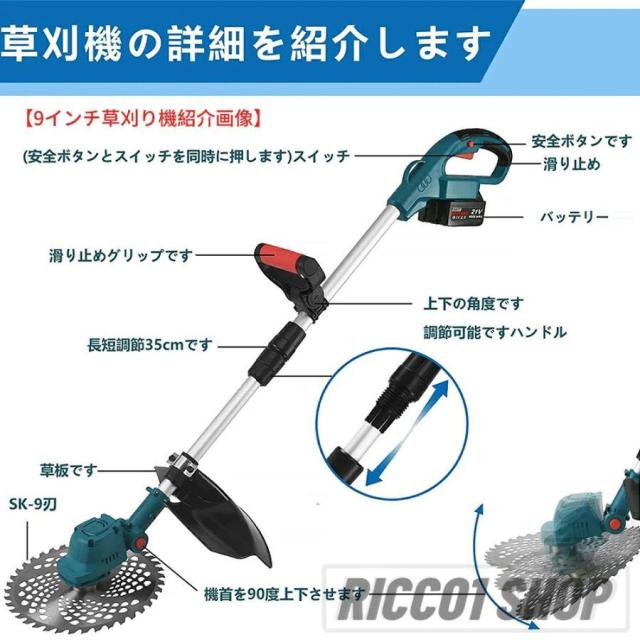 草刈機 充電式 電動草刈機 草刈り機 ブラシレスモータ コードレス 9インチ刈払機 刈払い機 伸縮 角度調整 家庭用 女性