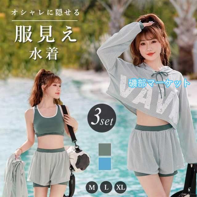 水着 レディース 体型カバー 高校生 中学生 3点セットプール スポーティー ママ 水着 ラッシュガード 韓国 女の子 10代 20代 30代 海 可愛い おしゃれ