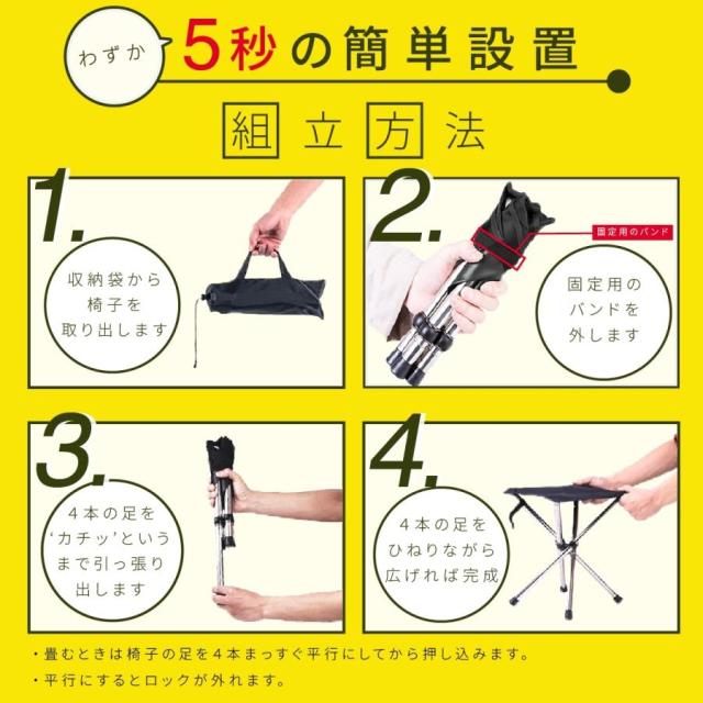 4脚伸縮イスの設置は脚を伸ばして広げるだけで簡単