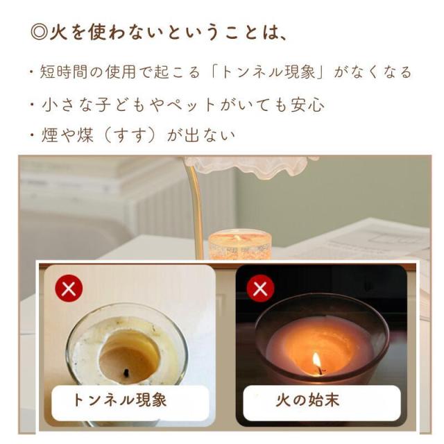 火を使わないのでススや煙も出ず、そのまま眠ってしまっても安心・安全にお使いいただけます。