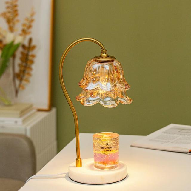 2025NEW キャンドルウォーマーランプ 大理石台座 海外インテリア アロマライト 間接照明 寝室 調光スイッチ アロマキャンドルトレー 大理石台座