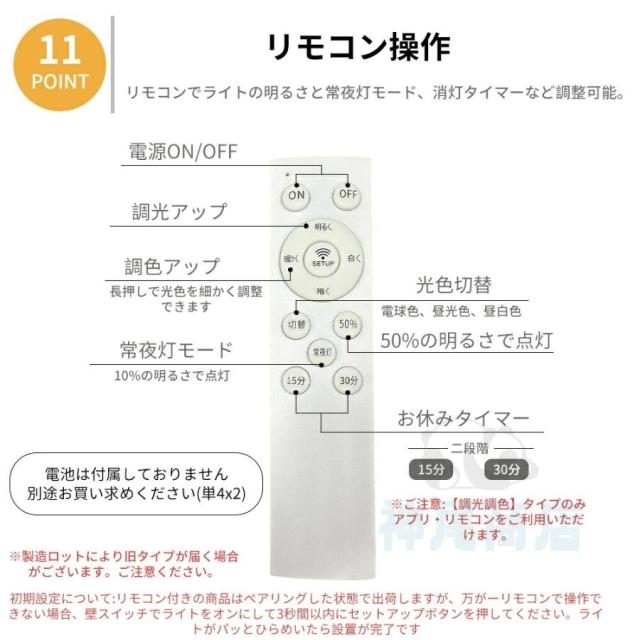 高輝度低消費電力・暖色冷色適用の調光調色タイプ・リモコン操作