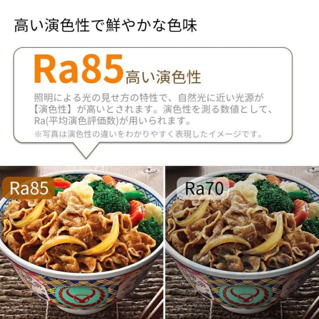 ★高品質LEDビーズならではの高演色性照明(他社Ra70:当社Ra85)。太陽光のような鮮明な明かりで、妻が時間かけて作った料理がよりうまく、子供が書いた絵がより可愛く見えます。