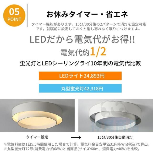 【省エネ・長寿命・防虫】 LEDシーリングライトは35Wで、蛍光灯よりも2?3倍明るいです♪電気代は大幅に削減できます,設計寿命も一般的なLEDより長めで60,000時間以上も超えています。ライト本体は防虫防震を設計して,夜間に蚊の侵入を防げます。