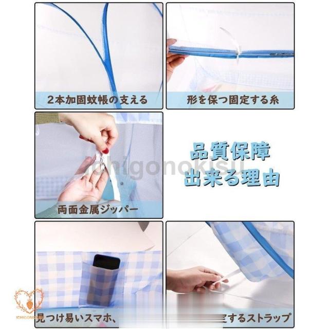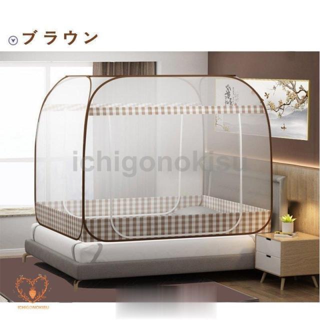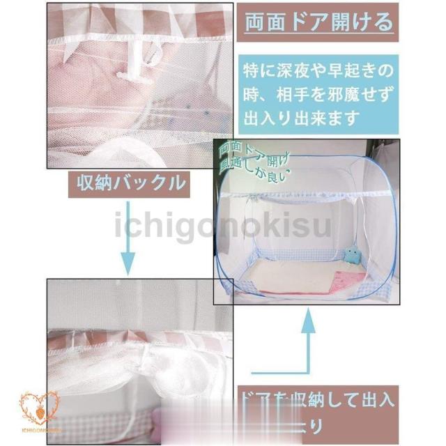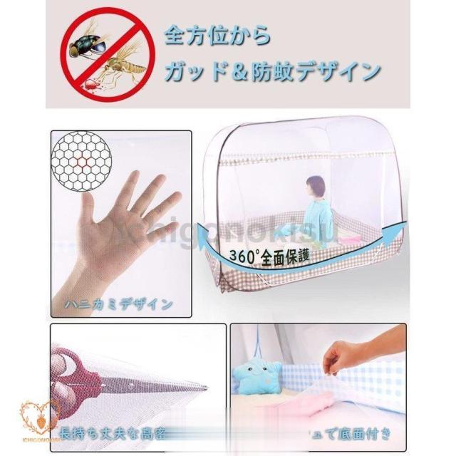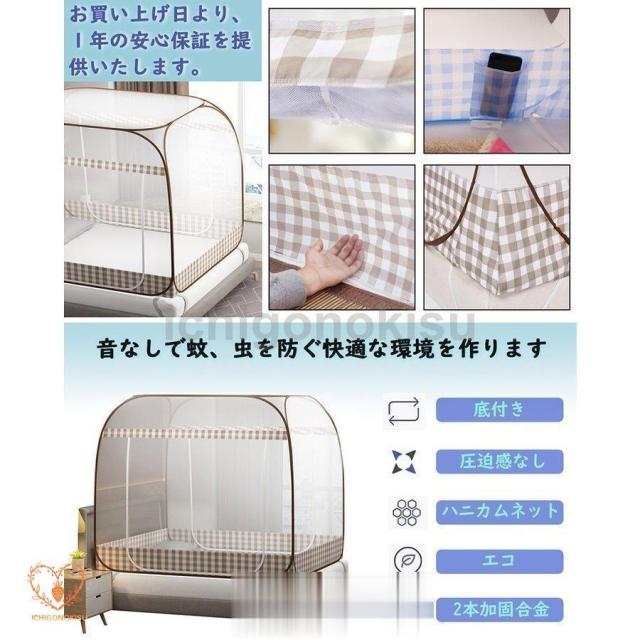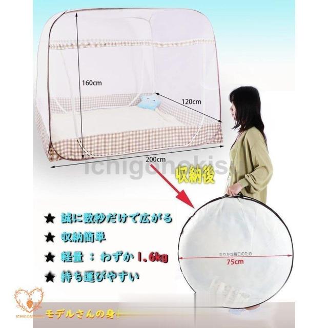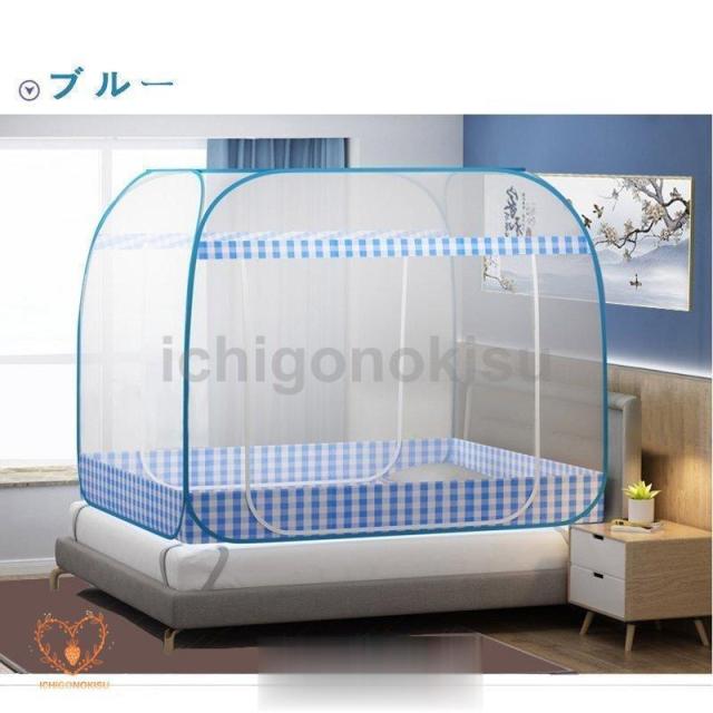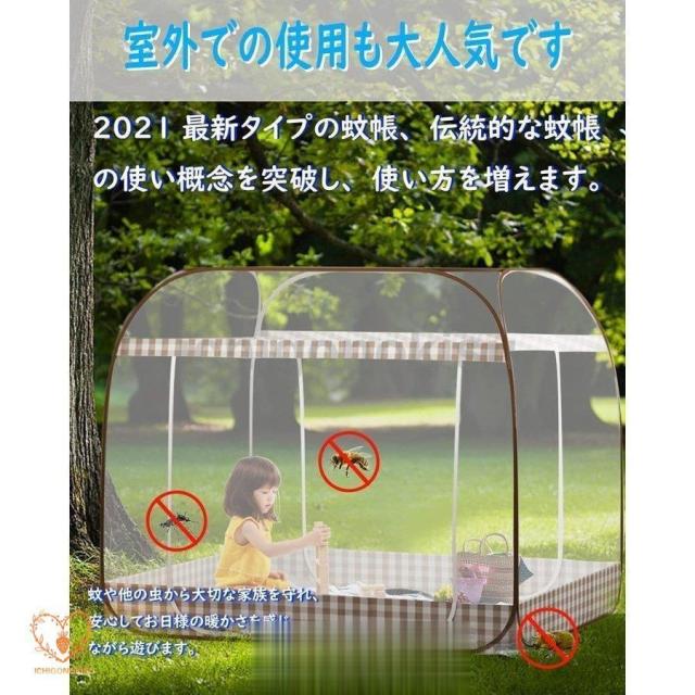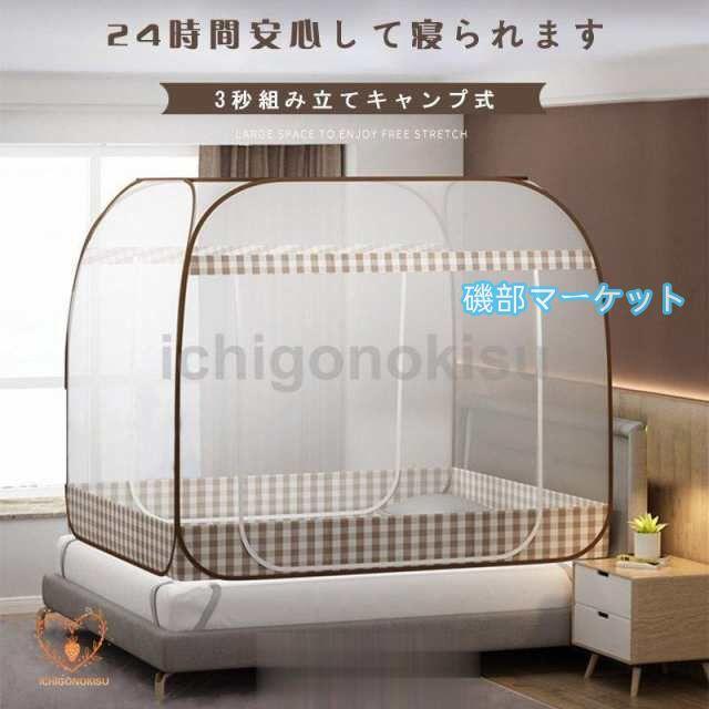 蚊帳 底付き ワンタッチ蚊帳 テント式 折りたたみ式 3秒組み立てキャンプ式 2ドア設計 モスキートネット 底生地付き 虫除け 蚊よけ ムカデ対策 収納便利