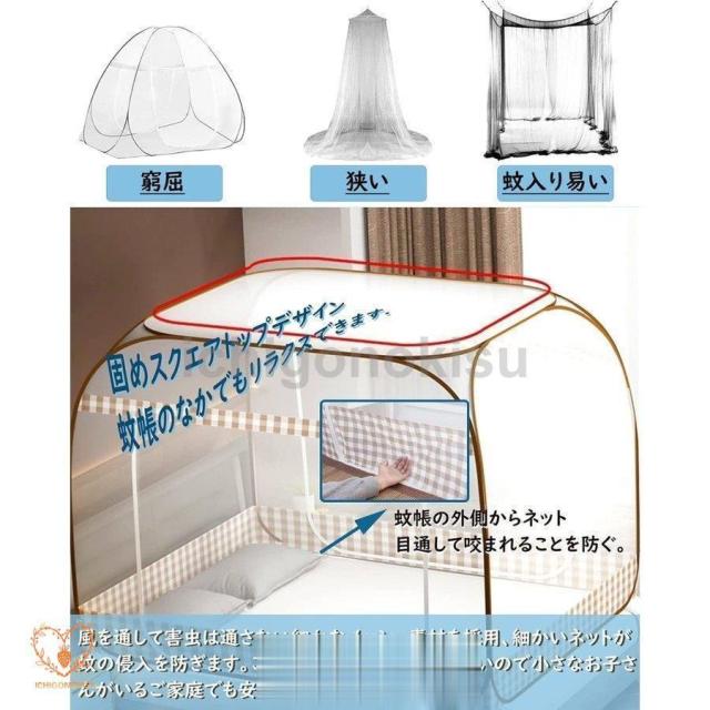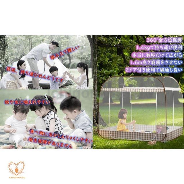 テント式で底までネットをしっかり張れるので、蚊や他の厄介な飛行昆虫から本質的に保護し、子供も大人も安心しで眠らせる。