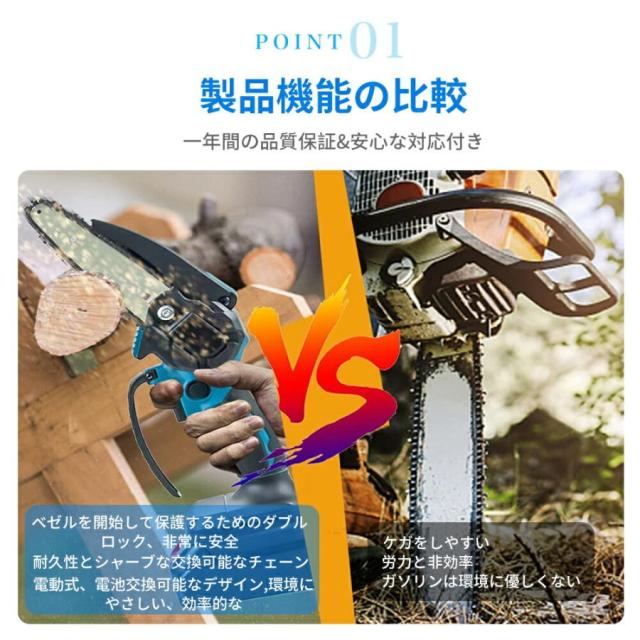 【用途】小型チェーンソーは小型で持ち運びが簡単で、電源コードや電源がない場所でも使用できます。女性でも簡単に操作・使用でき、長時間働いても疲れません