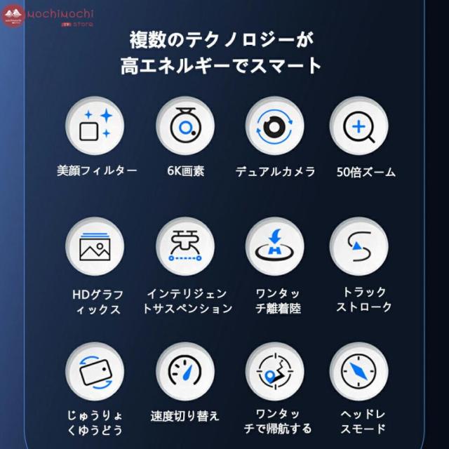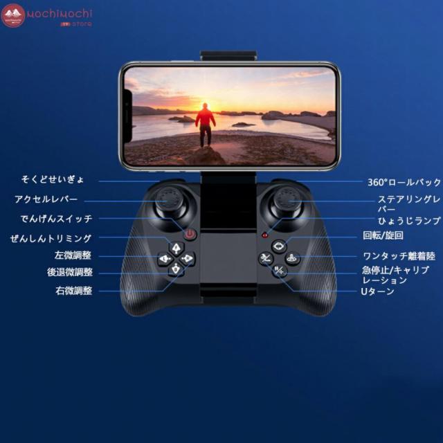 リアルタイム、高度維持、写真/録画、ワンキー離陸/着陸、モード切替、トリム調整、ヘッドレスモード