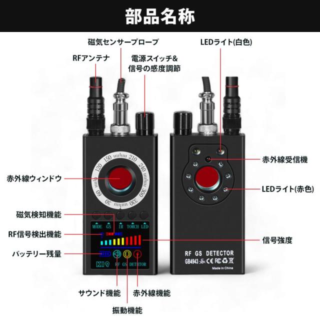 盗聴器 発見器 探知機 GPS 盗聴 盗撮 カメラ 無線式 高感度 充電式 発信機 防止 グッズ 電波 ストーカー 一人暮らし