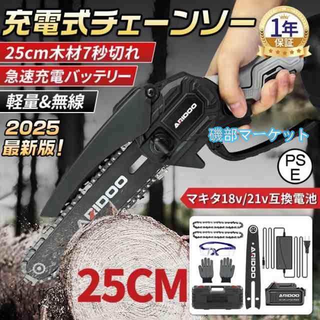 チェーンソー 充電式 大容量バッテリー付き マキタ コードレス バッテリー対応 電動 小型 安全ロック 家庭用 片手 軽量 女性 農業 園芸 2025新品 【一年保証】