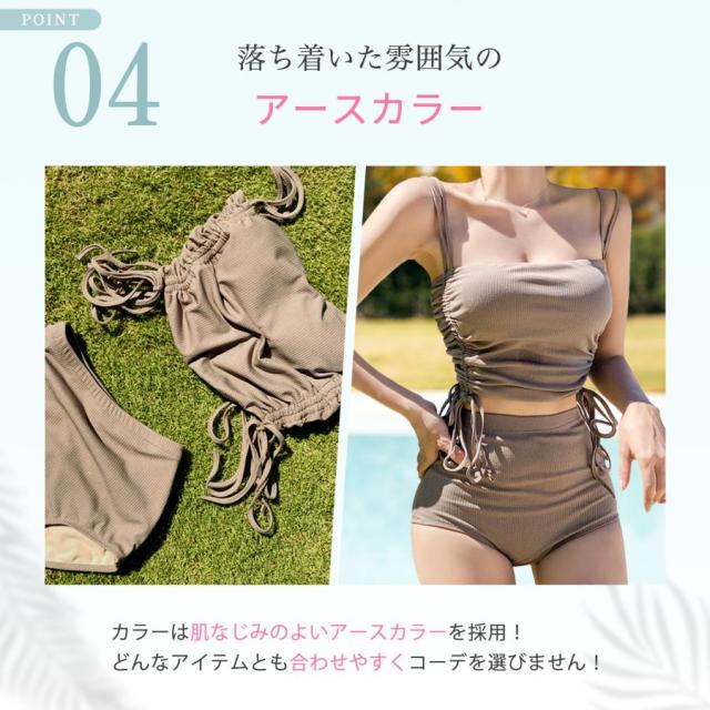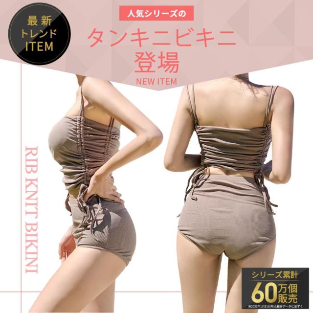 水着 ビキニ タンキニ 無地 モノキニ リブニット リブニット風 ハイウエスト 体型カバー レディース ママ 20代 30代 40代 上下セット セパレート