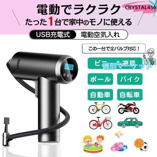 空気入れ 自転車用 USB充電式 電動空気入れ PSE認証 自転車 自動車 車 タイヤ ボール バイク 気圧測定 仏式 英式 米式 携帯 エアーポンプ コンパクト