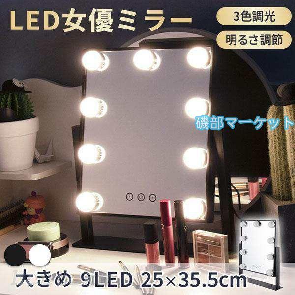 女優ミラー 大型 大きい 2色選べる 9LED LEDライト 鏡 化粧 メイク ハリウッドミラー ドレッサー 卓上 ブラック ホワイト LEDライトミ