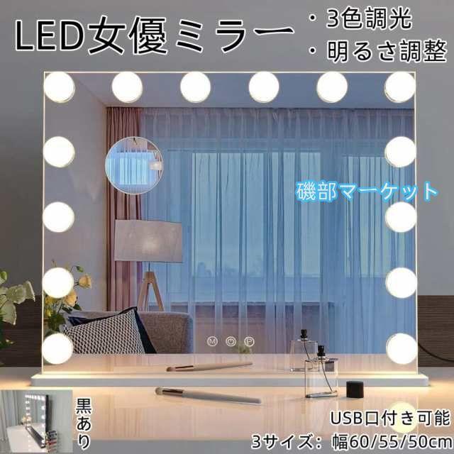 女優ミラー おしゃれ 可愛い コンパクト 化粧ミラー 卓上鏡 卓上ミラー 女性大人気 LEDミラー ライト 電球ミラー 三段調節可能 幅50/55/60cm 高さ42/47/52cm