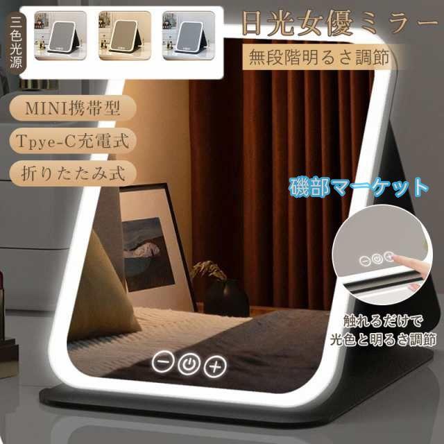 女優ミラー 卓上ミラー 日光女優ミラー 携帯型 化粧鏡 三色調光 LEDミラー 明るさ調節 Type-C タッチボタン 折りたたみ USB充電 メイク