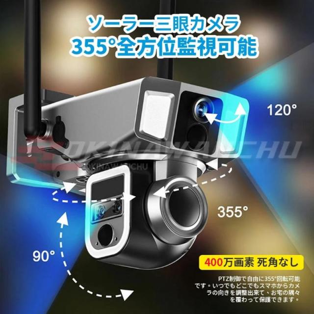 防犯カメラ ソーラー 家庭用 ソーラー ワイヤレス 400万画素 wifi 屋外セキュリティカメラ 自動録画 監視カメラ 高容量 PIRスマート人体検知 電源不要 録画機能