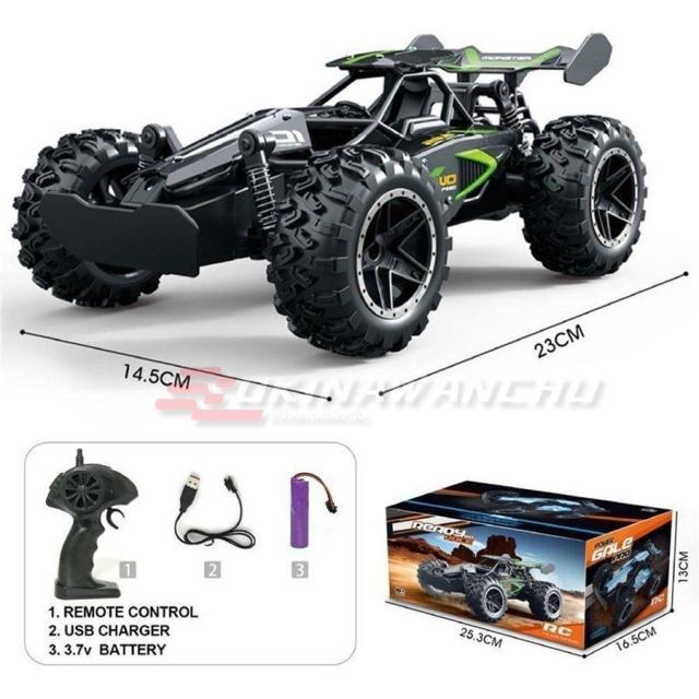 1/18大きい小さいもなくジャストサイズ、走行用3.7Vリチウム充電式バッテリー最大速度20km/hに達する、パワフルで驚くべきの走行速度が速い、反応速度も素早く、50-100mまでの操作距離も長い。
