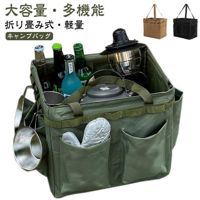 キャンプ コンテナ バッグ 収納ボックス ソフトコンテナ 大容量 折りたたみ 持ち運びに便利 キャンプ用品 薪ケース 折り畳み式 工具 ギア収納 道具
