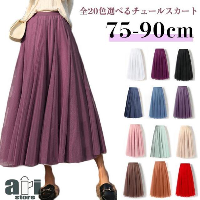 ロン スカート チュールスカート チュール 無地 チュールスカート レディース レディース フレアスカート プリーツスカート ロング ウエストゴム ミ