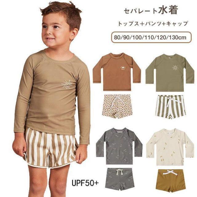水着 セパレート 男の子 70/80/90/100/110/120/130/cm 速乾 長袖 キャップ付き 上下セット ジュニア 子ども 子供水着 スイミング 紫外線対策 日焼け ベビー水着 子供用 こども みずぎ かわいい