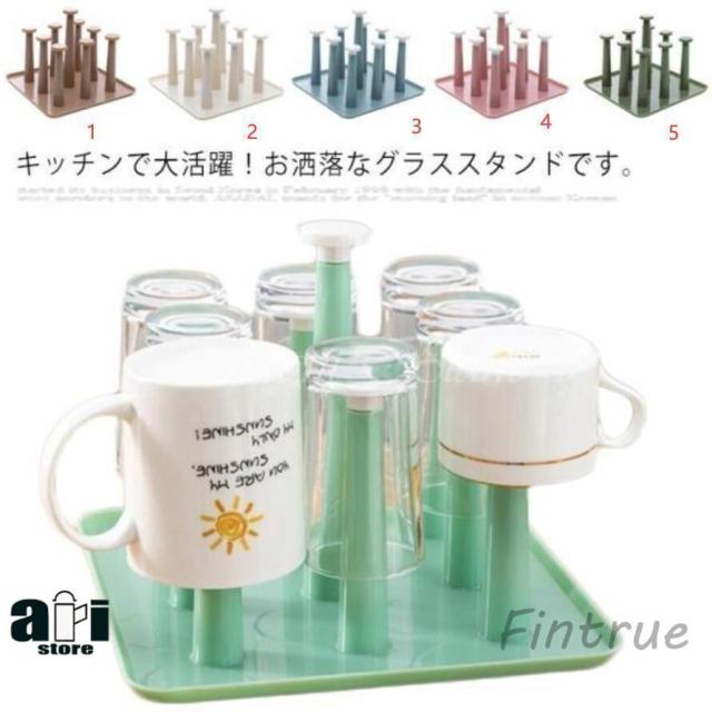 グラススタンド コップスタンド 水切り スタンド カップ収納 キッチン収納 9個掛ける ラックコップ 乾燥用 トレイ付き キッチン雑貨