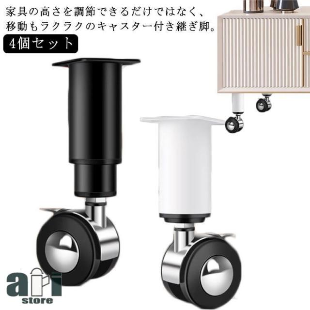 4個セット 継ぎ脚 キャスター付き 高さ調節機能付き ソファー ベッド 机 高さ調節 継足 家具 テーブル 継ぎ足 継足し 脚台 こたつ つぎ足 高さ