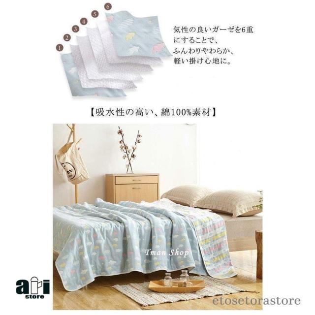 - この6層ガーゼケットは本当に気持ちいいです!綿100%で肌触りが優しく、赤ちゃんがお昼寝する時にちょうどよく、汗をかいても蒸れません。サイズは90x100cmで、幼稚園のお昼寝や家での休息にぴったりです。何度洗っても毛玉ができず、型崩れしないので品質は最高!入園祝いとして友達の子供にプレゼントしたら、とても喜ばれました!