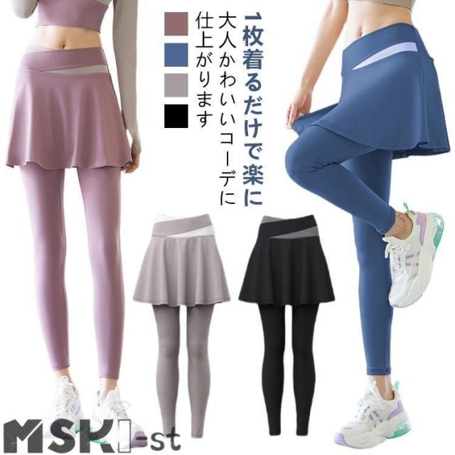 ドライ レギンス スカート スカート スポーツウェア 配色 レディース ウェア パンツ フェイクレイヤード トレーニングウェア ジム バイカラー 吸汗