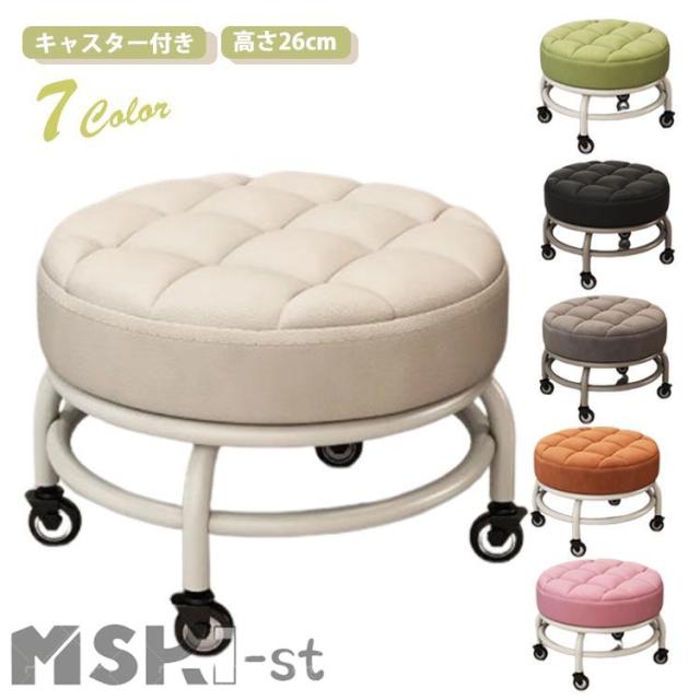 ロースツール トイレ清掃用 キャスター付き椅子 キルティング スチール脚 高さ26cm 全7色 ミニ スツール 低め フットケアスツール フット ネイル ペディキ
