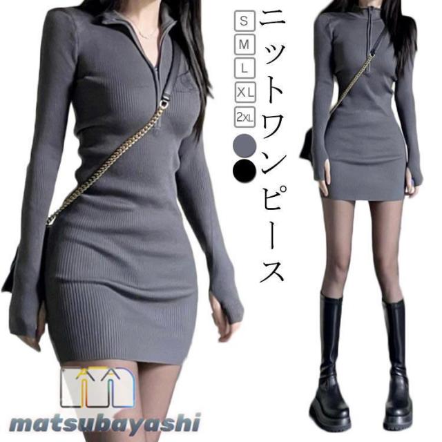 ミニ丈 タイトワンピース 着回し ニットワンピース レディース ポロ襟 リブニット 結婚式 チュニック カジュアル おしゃれ きれいめ シンプル ト
