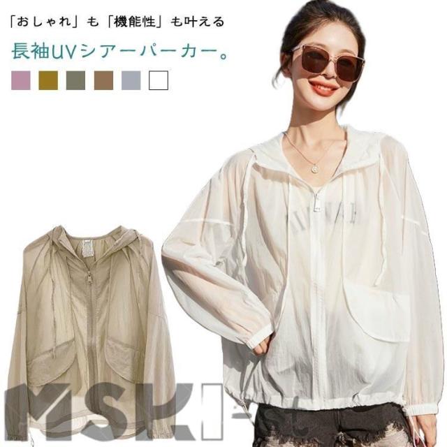 UVカット パーカー シアー 透け感 トップス レディース シアーブルゾン シアーパーカー UVパーカー シアートップス 長袖 涼しい 軽い 薄手 フ