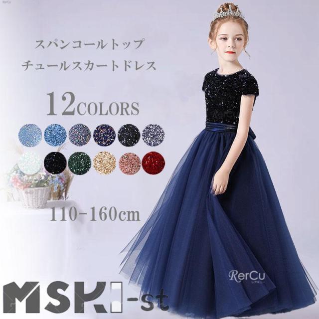 キラキラ。ふんわり。大人っぽさと可愛らしさが同居するフェミニンなドレス 高級 ドレス 子供 シンプル 上品 フォーマル 160 150 160 140 130 120 110 半袖 バイオリン ブルー フラワーガール 華やか ネイビー グリーン ピンク ブルー