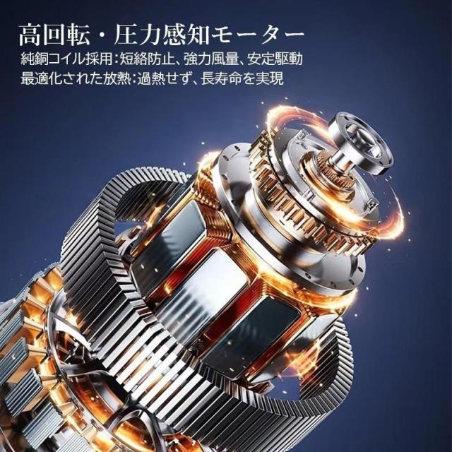 多段階風量調整機能: 高速モーターを搭載し、好みの涼しさを選べる多段階風量調整が可能。シーンに合わせて快適な体感温度を実現します。