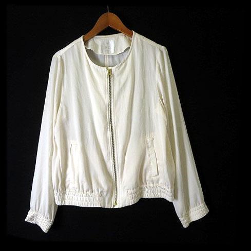 【中古】エージーバイアクアガール シアー ブルゾン ジャケット 落ち感 とろみ ジップアップ 長袖 M アイボリー