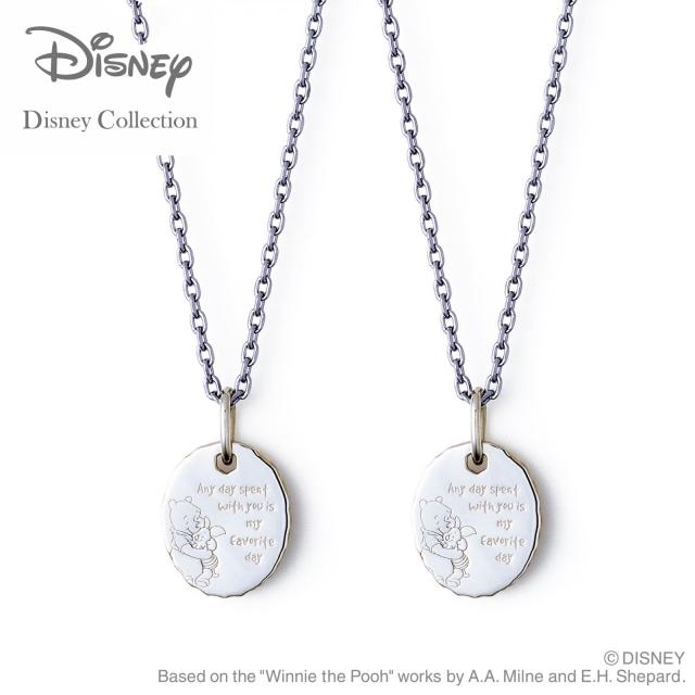 仲のいいプーさんとピグレットの姿が愛らしいペアネックレスは、「Any day spent with you is my favorite day(きみと過ごす日はどんな日でもぼくの大好きな日)」というプーさんの台詞が刻まれたカップルにぴったりのデザインです。