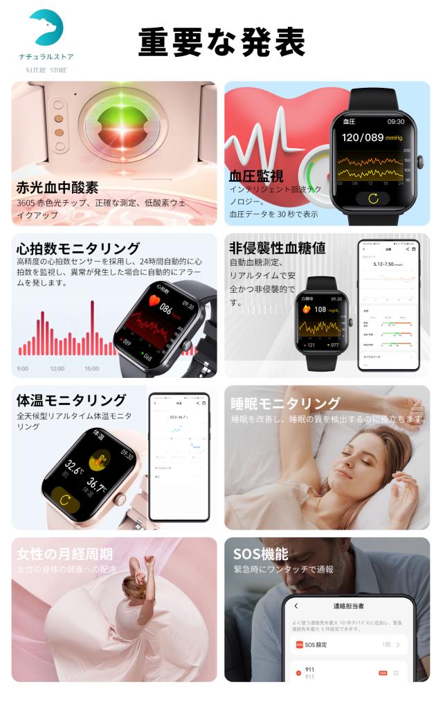 ◆商品到着後はまず検品、仮合わせのご確認をお願い致します。 (運送会社の保険適用期間は到着後1週間以内です。ご注意下さい!) これらの事をあらかじめご了承の上、注文してください。 スマートウォッチ 日本製センサー 血圧 値測定 血糖値測定 心拍 体温測定 血糖値 血中酸素1.9インチ 大画面 薄型 健康管理 日本語表示 日本語説明書 歩数計 iPhone/Android対応 リストバンド 腕時計 着信通知 F96 レビュー商品の評価: お店の情報届け先が沖縄の場合、別途送料2500円をいただきいてから発送します。 お店の評価: 連絡・応対 - 配送スピード - 梱包 - お店の商品を探す |