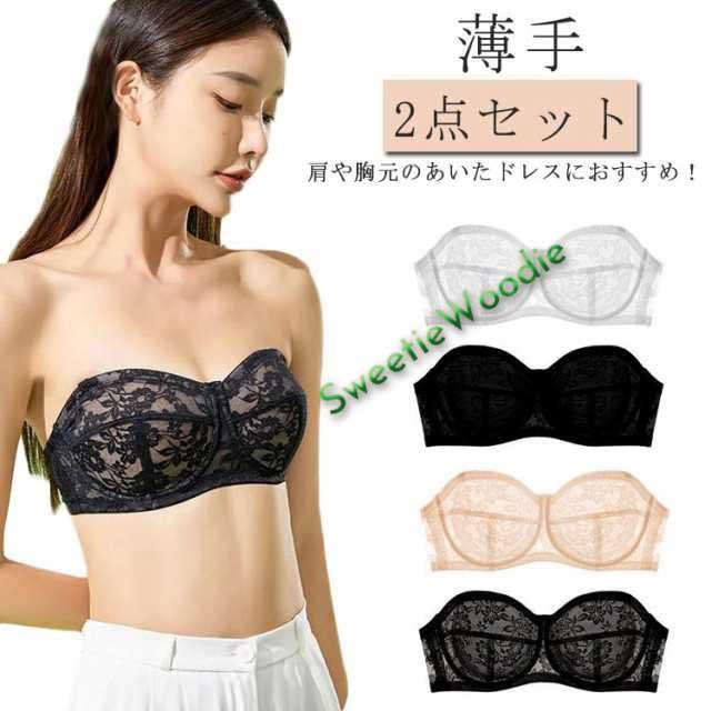 滑り止めプラス!ストラップレス ブラ ずれない 胸を小さく見える ブラ ワイヤー入り 大きいサイズ ブラジャー ブラ 紐なしブラ チューブトップ レースブラ 薄手 脇肉スッキリ 垂れ防止 結婚式 ドレス ダンス 肩紐付き