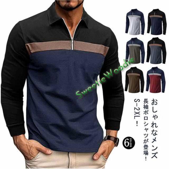 ポロシャツ ハーフジップ メンズ 長袖 カットソー トレーナー 配色 Polo Tシャツ ゴルフシャツ 長袖ポロシャツ スポーツ 秋冬 おしゃれ ジッパー トップス ルームウエア バイカラー 無地 通勤 ゴルフウェア おしゃれ カジュアル 冬服 父の日 大きいサイズ S-2XL