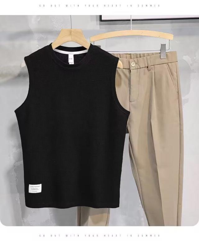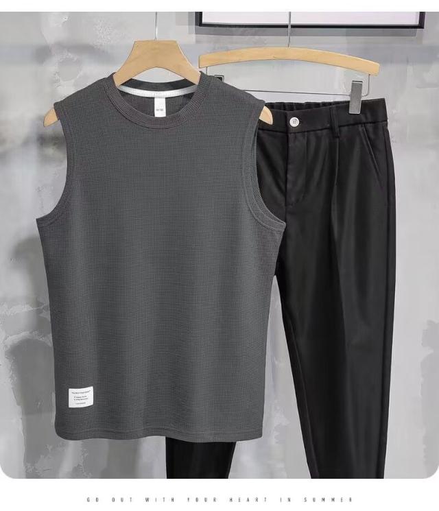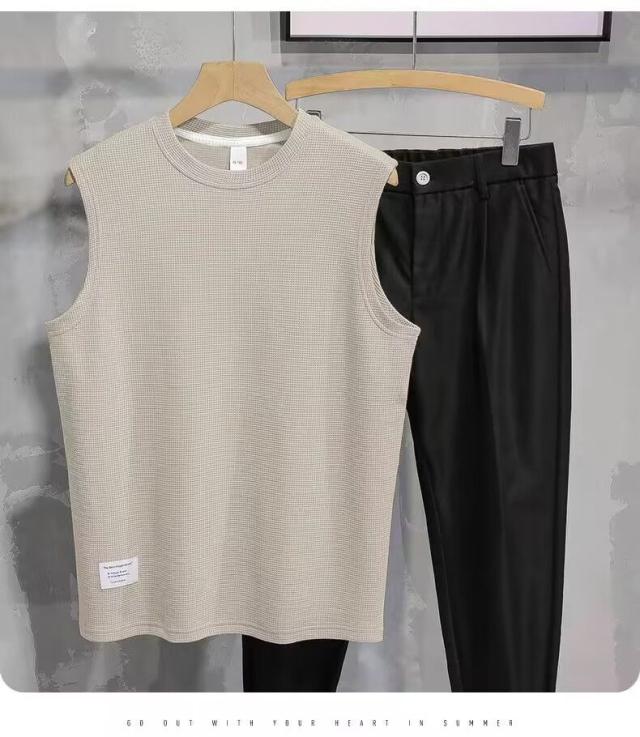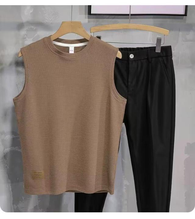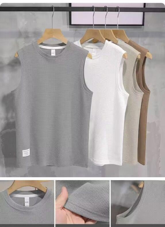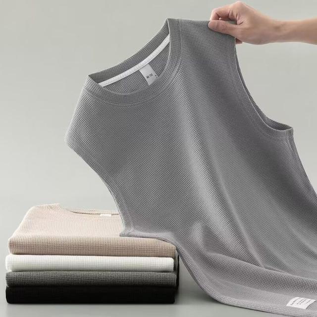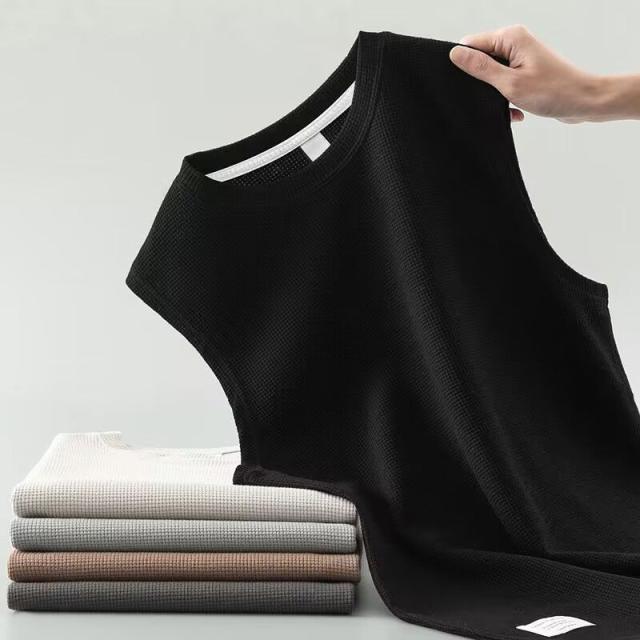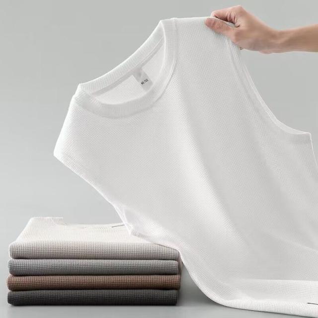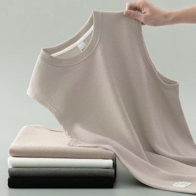 送料無料 メンズ タンクトップ ワッフル ノースリーブ トップス ロング丈 重ね着 レイヤード tシャツ インナー 無地 通気性 吸汗 大きいサイズ 春 夏 秋 冬 カジュアル 筋トレ トレーニング