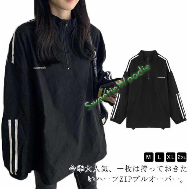 スウェット レディース 長袖 トップス カットソー ハーフジップ トレーナー ジップアップ ハーフZIPプルオーバー ハイネック スポーティー ロゴ 無地 ゆったり オーバーサイズ 大きいサイズ ユニセックス