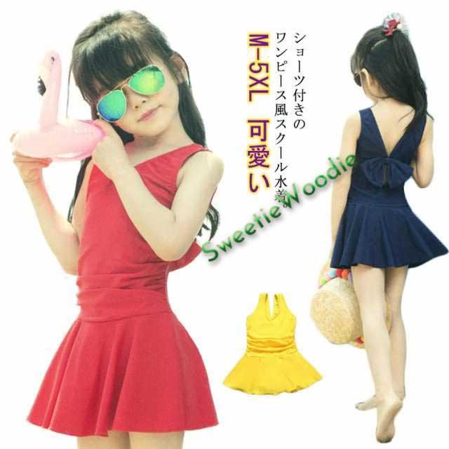 スクール水着 女の子 スカート ワンピース 水着 送料無料 キッズ ワンピース水着 ガール 女児 水着 小さいサイズ 大きいサイズ 80 90 100 110 120 130 140 150 プール 海 夏休み バックリボン 可愛い