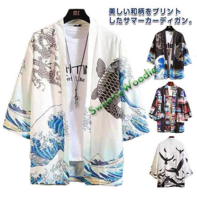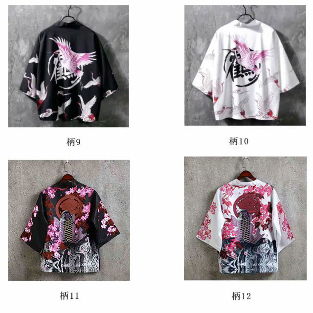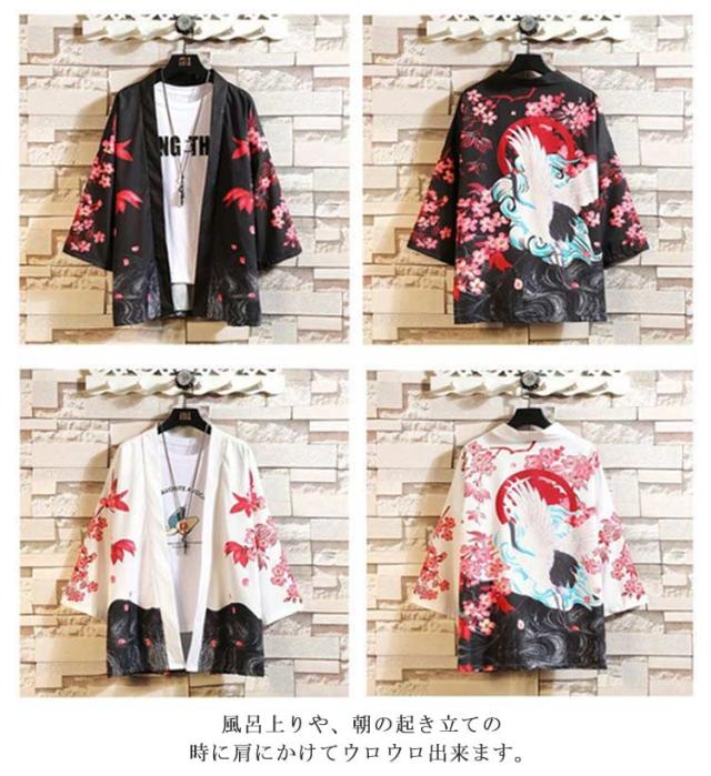 【送料無料】羽織 レディース メンズ カーディガン UVカット 七分袖 ゆったり 鶴柄 トップス アウター 夏 着物 浴衣 和風 羽織 法被 甚平 ダンス衣装 コスプレ 花火大会 男女兼用 薄手 春夏秋 きれいめ おしゃれ トップス 原宿系