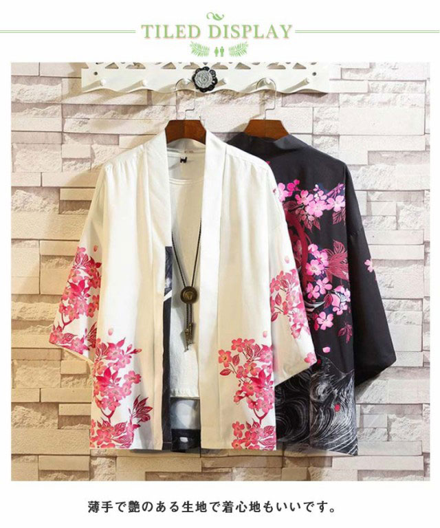 | 美しい和柄をプリントしたサマーカーディガン。 薄手で艶のある生地で着心地もいいです。 生地は薄いけどシワになりにくそうで使いやすい。 風呂上りや、朝の起き立ての時に肩にかけてウロウロ出来ます。 普段使いもできる便利な一枚。 | |