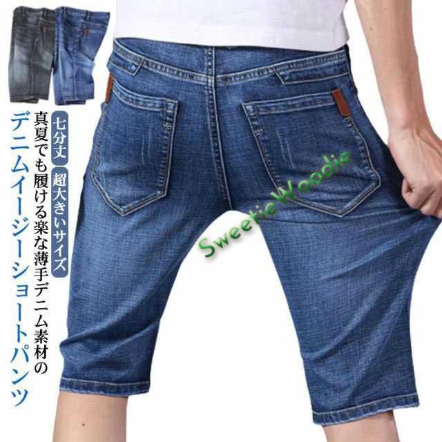 【送料無料】 デニムショートパンツ 七分丈 薄手 スリムフィット ストレッチ デニムハーフパンツ メンズ ショート デニムパンツ 黒 ゆったり ジーンズ 短パン デニムパンツ 大人 カジュアル ビジネス 超大きいサイズ