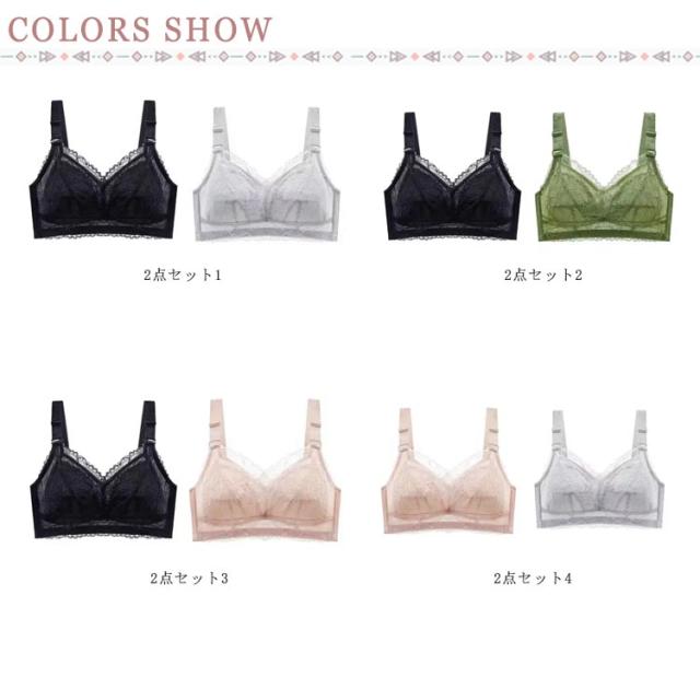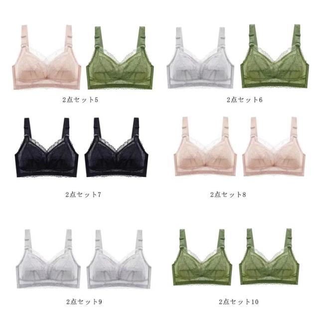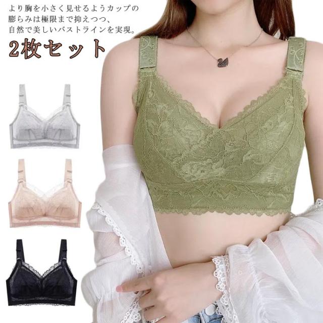 送料無料 2枚セット 胸が小さく見える ブラ 胸を小さく見せるブラジャー 総レース ブラジャー レースブラ ノンワイヤーブラ 薄手 着痩せブラ 脇高ブラ 脇肉スッキリ 垂れ防止 かわいい おしゃれ 75B-100E