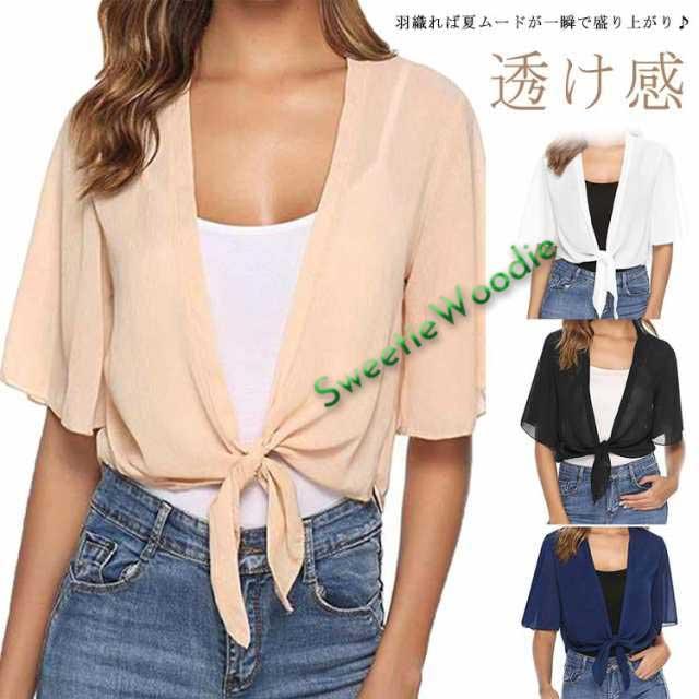 前結び ショート丈 ボレロ ボレロカーディガン ショート丈 シフォンブラウス レディース 半袖 フレア袖丈 シアー カーディガン ボレロ 透け感 シャツブラウス 前結び ブラウス トップス 春 夏 春物 春服 送料無料