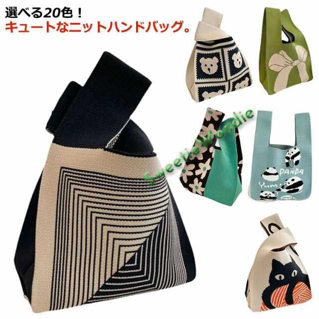送料無料 ニットバッグ レディース ニット トートバッグ 小さめ ミニバッグ ハンドバッグ ミニトート 手提げ かばん 鞄 縦型 マルシェバッグ エコバッグ サブバッグ 選べる20種類 花柄 ネコ 猫 幾何柄 パンダ くま リボン かわいい マルシェトート