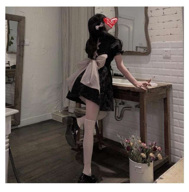 地雷系 ワンピース 服 スカート 参戦服 ミニワンピース ハロウィン コスプレ 黒 ゴシック ロリータ ロリィタ ミニドレス お嬢様 ゆめかわいい やみ可愛い 韓国 春 夏 半袖 ミニ丈 可愛い バックリボン レトロ バルーンスカート パフスリーブ ブラック