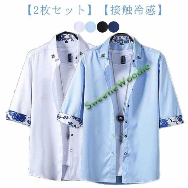 【2枚セット】メンズ ワイシャツ 夏服 半袖 オシャレ 服 メンズ 接触冷感7分袖シャツ 吸汗速乾 チャイナ風 接触冷感 カジュアルシャツ オックスフォードシャツ 柔らかい 薄手 お洒落 大きいサイズ 送料無料