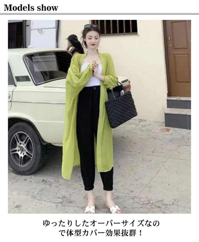 ロングカーディガン 春夏 レディース 透け感 薄手 シアーカーディガン 袖 ボリューム 長袖 シフォンカーディガン シンプル おしゃれ 涼しい カーディガン カーデ 羽織り 冷房対策 紫外線 全10色 UVカット S M L XL 2XL 3XL